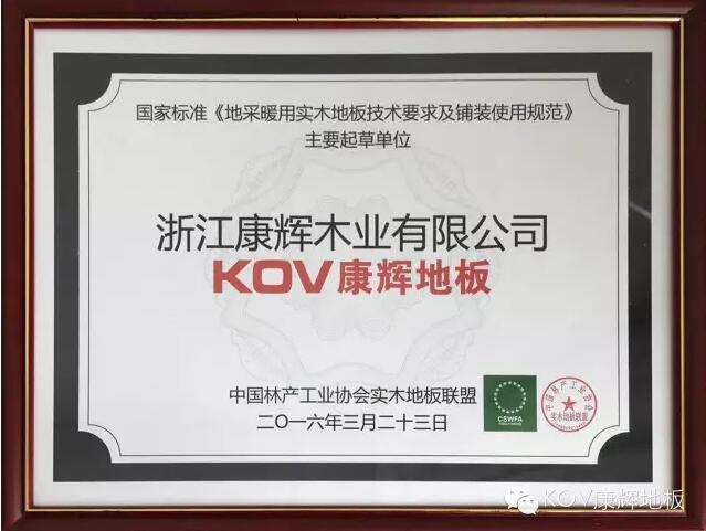 地采暖實木地板是目前行業(yè)中的熱門話題,但是目前市面上的地采暖地板市場紛雜,產(chǎn)品質(zhì)量參差不齊對消費者的利益造成損害?递x地板多年來一直致力于地采暖地板的技術(shù)研發(fā)和產(chǎn)品升級,此次活動上康輝地板被納入«地采曖用實木地板技術(shù)要求及鋪裝使用規(guī)范»
