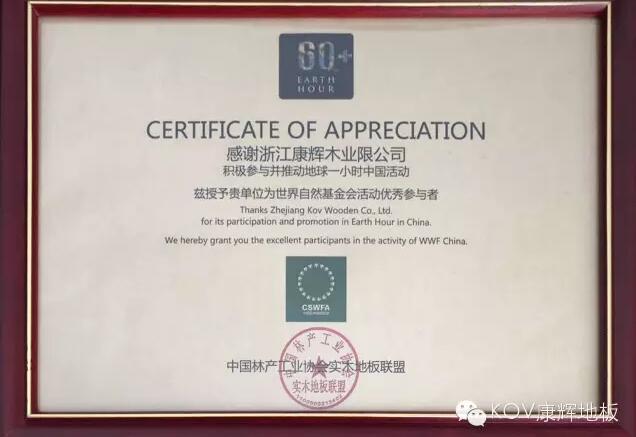 中國林產(chǎn)工業(yè)協(xié)會原會長兼顧問張森林,中國林業(yè)科學(xué)院木林工業(yè)研究所書記鄧侃,WWF世界自然基金會代表王良煜出席了本次活動,共同為中國實木地板聯(lián)盟優(yōu)秀企業(yè)代表頒發(fā)參編證明、“中國環(huán)保地板品牌”、“地球一小時優(yōu)秀參與者”等榮譽獎項并按下各自手模共同啟動了地板產(chǎn)業(yè)2016地球一小時公益活動。中國實木地板聯(lián)盟創(chuàng)始成員之一,中國環(huán)保地板倡導(dǎo)者的康輝地板出席了本次盛會,并被中國林產(chǎn)工業(yè)協(xié)會中國實木地板聯(lián)盟推選為“中國環(huán)保地板品牌”。