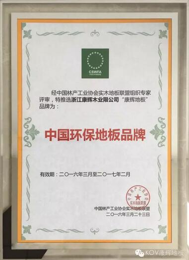 康輝地板被中國實木聯(lián)盟推選為中國環(huán)保地板名牌