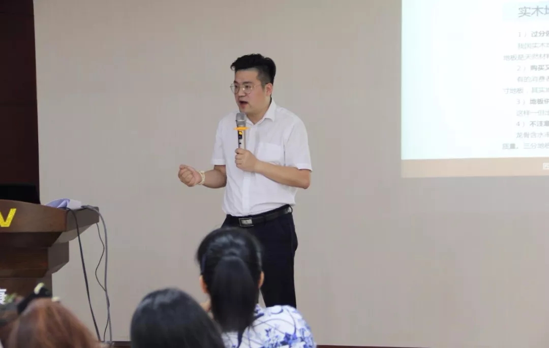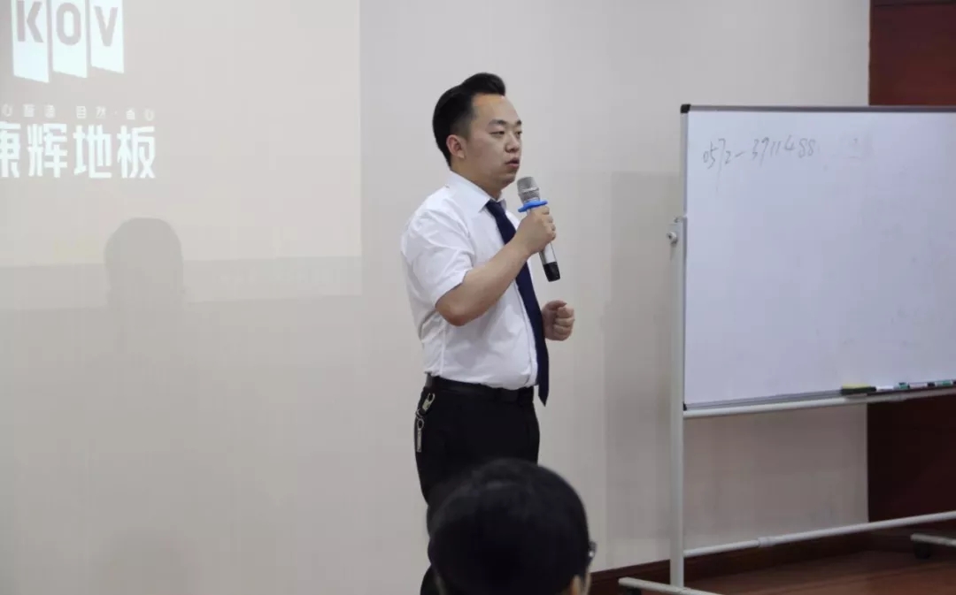 在隨后的培訓(xùn)中,康輝地板營(yíng)銷(xiāo)部總監(jiān)錢(qián)總以自己走訪(fǎng)市場(chǎng)多年的經(jīng)驗(yàn)和對(duì)地板的深入了解,為到場(chǎng)的經(jīng)銷(xiāo)商們帶來(lái)一堂實(shí)戰(zhàn)型的專(zhuān)業(yè)知識(shí)分享。如何介紹地板的木材、特性更易被消費(fèi)者所接受?如何將康輝在行業(yè)中的優(yōu)勢(shì)轉(zhuǎn)化為自己攬客的工具?.......一招招一式式,從市場(chǎng)實(shí)際出發(fā),從用戶(hù)心理出發(fā),讓經(jīng)銷(xiāo)商們?cè)陂T(mén)店經(jīng)營(yíng)中能更加揮灑自如。