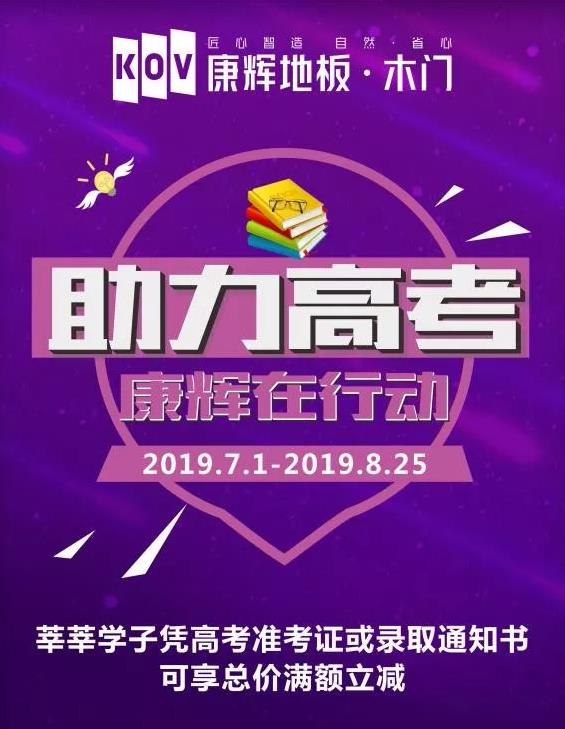 憑學(xué)子高考準(zhǔn)考證或大學(xué)錄取通知書,到您所在城市的康輝地板專賣店即可享受到康輝為您定制的“滿額立減”驚喜福利!