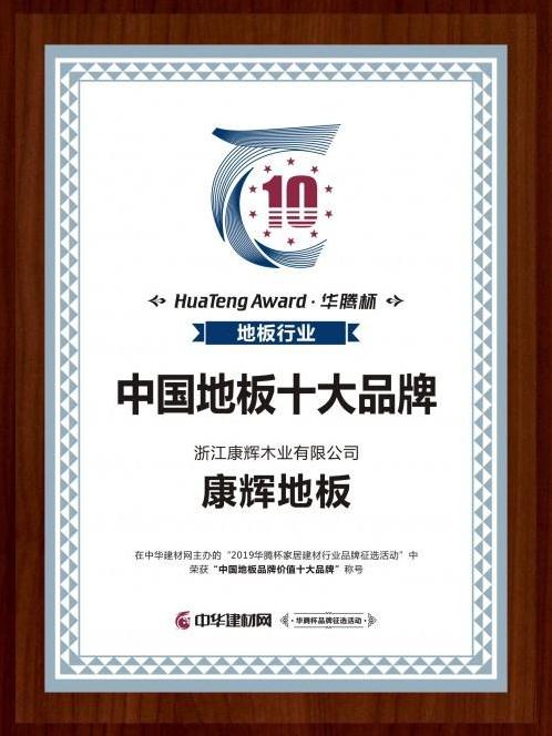 2019年,康輝地板獲得了中國“環(huán)境標(biāo)志產(chǎn)品認(rèn)證”、“浙江制造”品字認(rèn)證;在首屆“華騰杯”中國家居建材行業(yè)品牌征選活動(dòng)中,康輝地板摘得2019年度“中國地板品牌價(jià)值十大品牌”獎(jiǎng)項(xiàng)!分量十足的榮譽(yù)背后,既是消費(fèi)者與業(yè)內(nèi)人士給予康輝地板的高度認(rèn)可,也是康輝地板獨(dú)具匠心、精益求精的品質(zhì)見證!