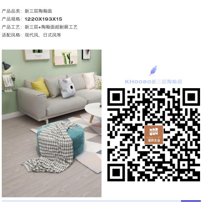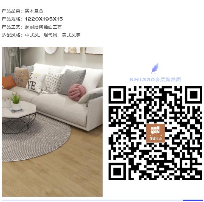 康輝地板將自己研發(fā)的第六代陶釉面技術(shù)應(yīng)用于多層地板之上,讓多層地板在擁有穩(wěn)定、環(huán)保、美觀的基礎(chǔ)上更具有了超強(qiáng)的耐磨特性!