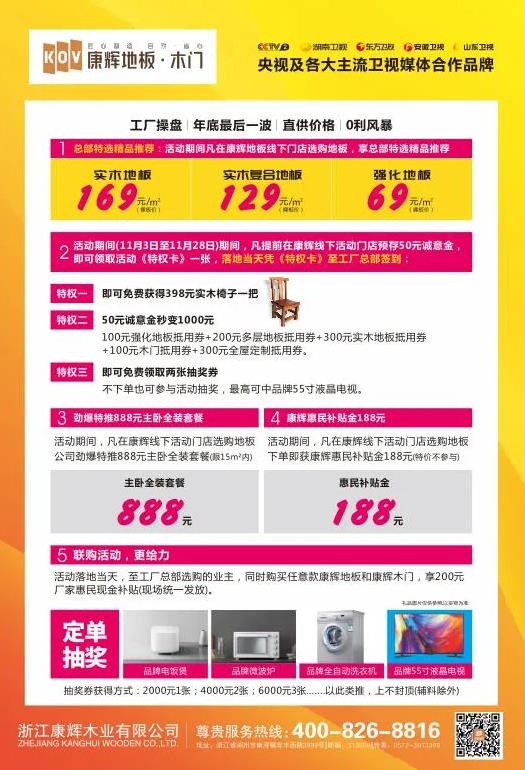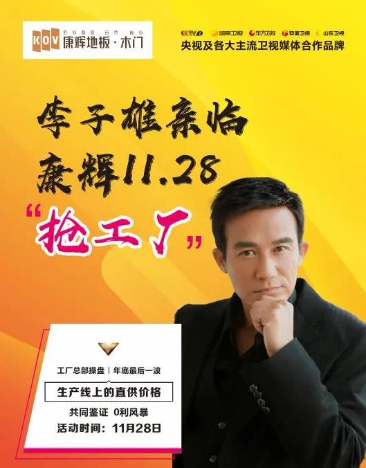 2020年11月康輝地板開啟本年度最盛大的一次工廠團(tuán)購盛會,特邀香港影星李子雄走進(jìn)康輝,帶著一代人的青春記憶享受大品牌的放價福利。詳情可咨詢?nèi)珖鞯貙Yu店。