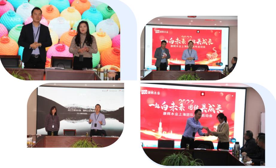 在啟動交流會上,康輝木業(yè)董事長沈總率先致歡迎辭。對上海團隊送上新春問候和美好祝愿;仡櫰髽I(yè)的發(fā)展歷史,從沿承1898年的沈氏木藝文化成立康輝木業(yè),打造康輝地板、康輝木門、康輝木飾面等多品牌發(fā)展,到打造“多渠道、密集型”的銷售體系,再到進軍全屋大家居領(lǐng)域……康輝在一步一個腳印中發(fā)展壯大。在康輝蓬勃發(fā)展的歷史節(jié)點,沈總鼓勵大家要沉下心專注當下,腳踏實地不好高騖遠,跟隨企業(yè)發(fā)展的腳步,發(fā)揮品牌輻射影響力、提升門店經(jīng)營管理效率、拓展獲客渠道等出發(fā)點,全面提升對門店以及各區(qū)域團隊的賦能力度,團隊與總部共同攜手并肩2022年,創(chuàng)造輝煌新篇章!