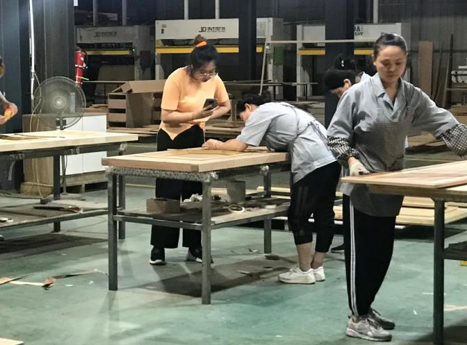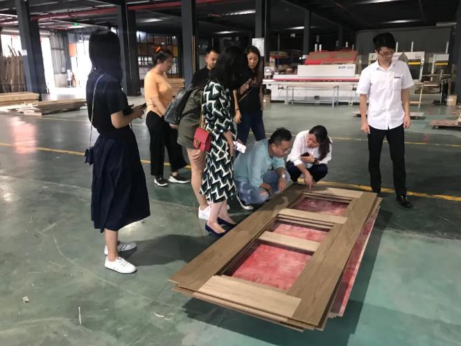參觀過(guò)程中徐總向星杰裝飾的設(shè)計(jì)師們?cè)敿?xì)介紹了康輝木業(yè)的發(fā)展歷程,就產(chǎn)品的生產(chǎn)工藝、藝術(shù)風(fēng)格、美學(xué)表達(dá)和裝飾效果等進(jìn)行了詳盡的闡釋。并帶設(shè)計(jì)師們參觀了康輝整裝產(chǎn)品的生產(chǎn)基地,現(xiàn)場(chǎng)觀摩康輝高品質(zhì)產(chǎn)品的生產(chǎn)全過(guò)程。康輝木業(yè)的產(chǎn)品質(zhì)感、對(duì)工序的嚴(yán)謹(jǐn)把控和對(duì)品質(zhì)的高要求獲得了現(xiàn)場(chǎng)設(shè)計(jì)師們的高度認(rèn)可。